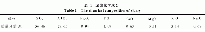 以焦寶石、高(gao)嶺(ling)土和石英粉等礦物原料配制泥(ni) 漿,泥(ni)漿密度1.65,泥(ni)漿化學組成(cheng)見表1。