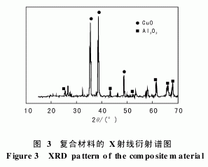 試驗表(biao)明,焙燒溫(wen)度(du)從600℃上(shang)升(sheng)到750℃, NO轉(zhuan)化(hua)(hua)率逐步提高(gao)。可(ke)見提高(gao)焙燒溫(wen)度(du)促進(jin)了(le)催 化(hua)(hua)劑(ji)(ji)對NO的催化(hua)(hua)還原活(huo)性。這是(shi)由(you)于(yu)高(gao)溫(wen)有利(li)于(yu)活(huo)性組(zu)分Cu在催化(hua)(hua)劑(ji)(ji)表(biao)面(mian)的遷移和擴散(san),使得活(huo) 性組(zu)分在催化(hua)(hua)劑(ji)(ji)表(biao)面(mian)分布更均勻[10],另(ling)外,高(gao)溫(wen)焙 燒改變了(le)Cu在催化(hua)(hua)劑(ji)(ji)上(shang)晶相結構(gou)(gou),生(sheng)成了(le)更有利(li)于(yu)催化(hua)(hua)反應的結構(gou)(gou)。Cu負載量(liang)為(wei)多孔陶瓷載體質(zhi) 量(liang)的10%時,Cu/TiO2/Al2O3/多孔陶瓷復合(he)材料的 X射線衍(yan)射譜圖(tu)如圖(tu)3所示(shi)。