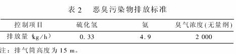 轉運設施產生的臭氣,經處理后執行GB14554-93惡臭污染物排放標準中規定的標準限值,見表2。