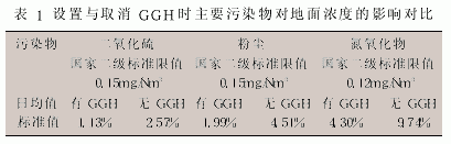 某(mou)電(dian)廠(chang) 2 臺 30 萬 kW 機組合(he)用一(yi)個煙(yan)囪, 煙(yan)囪高(gao)度為210m, 設置(zhi)(zhi)(zhi)與(yu)取消 GGH 時(shi)主要污染(ran)物對(dui)(dui)地面(mian)濃(nong)(nong)度的影(ying)響對(dui)(dui)比如(ru)表(biao) 1 所示[3]。從(cong)表(biao) 1 的計算結(jie)果(guo)可以看出(chu), 由于(yu)(yu)二氧(yang)(yang)化(hua)硫和(he)粉塵的源強度在除塵和(he)脫硫之(zhi)后大(da)大(da)降(jiang)低(di)。因此, 無論是否(fou)設置(zhi)(zhi)(zhi) GGH, 它(ta)們的貢獻只(zhi)(zhi)占環(huan)(huan)(huan)(huan)境(jing)(jing)允(yun)許值(zhi)的很小(xiao)一(yi)部分。由于(yu)(yu) FGD 不能(neng)有(you)效脫除氮(dan)(dan)氧(yang)(yang)化(hua)物, 氮(dan)(dan)氧(yang)(yang)化(hua)物的源強度并沒有(you)降(jiang)低(di), 因此是否(fou)設置(zhi)(zhi)(zhi) GGH 對(dui)(dui)于(yu)(yu)氮(dan)(dan)氧(yang)(yang)化(hua)物的貢獻有(you)較大(da)影(ying)響,但從(cong)表(biao) 1看出(chu), 仍然只(zhi)(zhi)占環(huan)(huan)(huan)(huan)境(jing)(jing)允(yun)許值(zhi)的 10%左右(you)。因此, 對(dui)(dui)環(huan)(huan)(huan)(huan)境(jing)(jing)的影(ying)響不會(hui)很顯著。實際上降(jiang)低(di)氮(dan)(dan)氧(yang)(yang)化(hua)物對(dui)(dui)環(huan)(huan)(huan)(huan)境(jing)(jing)影(ying)響的根(gen)本措施是安裝(zhuang)脫硝(xiao)裝(zhuang)置(zhi)(zhi)(zhi), 想通(tong)過(guo)擴散(san)來降(jiang)低(di)落地濃(nong)(nong)度只(zhi)(zhi)是一(yi)種權宜之(zhi)計, 只(zhi)(zhi)能(neng)減輕局部環(huan)(huan)(huan)(huan)境(jing)(jing)污染(ran), 不能(neng)減輕總體環(huan)(huan)(huan)(huan)境(jing)(jing)污染(ran)。但如(ru)果(guo)電(dian)廠(chang)的環(huan)(huan)(huan)(huan)境(jing)(jing)濕度處(chu)(chu)于(yu)(yu)飽和(he)狀態(tai), 則濕煙(yan)氣的抬升(sheng)與(yu)其處(chu)(chu)于(yu)(yu)環(huan)(huan)(huan)(huan)境(jing)(jing)濕度未飽和(he)時(shi)有(you)明(ming)顯不同。此時(shi) FGD 系統(tong)設置(zhi)(zhi)(zhi) GGH 與(yu)否(fou)對(dui)(dui)煙(yan)氣抬升(sheng)高(gao)度差異不大(da), 不會(hui)造(zao)成(cheng)地面(mian)污染(ran)濃(nong)(nong)度的改變(bian)。