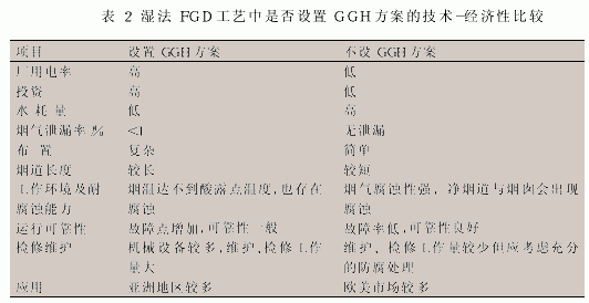 濕法(fa) FGD 工(gong)藝中是否設置 GGH 方(fang)案的技術- 經濟性(xing)比較如表 2 所(suo)示:
