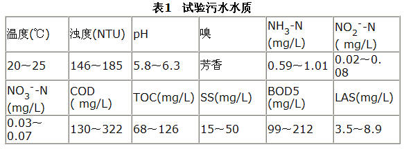 試驗(yan)污水(shui)水(shui)質如表(biao)1所(suo)示。