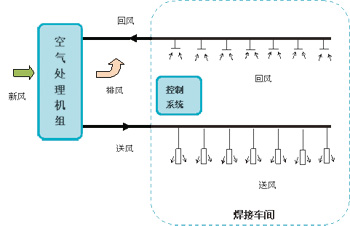 高大廠房焊接煙(yan)塵(chen)的治理一直是一個(ge)技(ji)術(shu)難題,通(tong)過分層送風技(ji)術(shu)可以(yi)有效地解決(jue)焊接煙(yan)塵(chen)的污染(ran)問題。