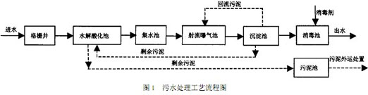 工程采用水解酸化—射流曝氣工藝進行處理,其工藝流程見圖1。