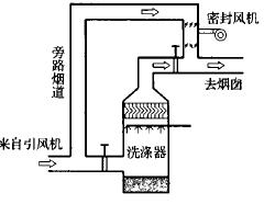 在煙氣旁通再熱(re)系統中,一部分未經脫(tuo)硫處(chu)理(li)的、溫度大約在130~150℃煙氣與經脫(tuo)硫洗滌(di)處(chu)理(li)的、溫度為45~65℃的煙氣在吸收塔(ta)的下(xia)游混合,如圖所(suo)示。