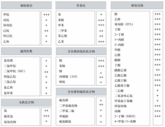 服務業:芳香烴&脂肪烴、酸類、醛類、醇類、酮類和無機 化合物(氨&硫化氫等)等單一或多種混合組分