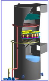 這(zhe)種結構的目(mu)的是通過空(kong)氣(qi)動力學(xue)、流體(ti)(ti)力學(xue)技(ji)術和(he)優化設計(ji)方法,將氣(qi)液的高(gao)速、高(gao)強度摻混(hun)和(he)氣(qi)液的充分分離有(you)機(ji)地組合在(zai)一(yi)個塔體(ti)(ti)之內。