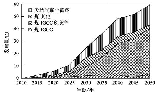 應用CCS的(de)(de)(de)(de)(de)(de)(de)發(fa)(fa)電(dian)(dian)(dian)技(ji)術的(de)(de)(de)(de)(de)(de)(de)發(fa)(fa)電(dian)(dian)(dian)量(liang)(liang)將(jiang)(jiang)從(cong)(cong)2030年(nian)(nian)的(de)(de)(de)(de)(de)(de)(de)27 EJ增(zeng)加到2050年(nian)(nian)的(de)(de)(de)(de)(de)(de)(de)60 EJ,如(ru)圖所示。到2030年(nian)(nian)、2050年(nian)(nian),考(kao)慮CCS技(ji)術的(de)(de)(de)(de)(de)(de)(de)燃煤發(fa)(fa)電(dian)(dian)(dian)廠的(de)(de)(de)(de)(de)(de)(de)發(fa)(fa)電(dian)(dian)(dian)量(liang)(liang)將(jiang)(jiang)分(fen)別占(zhan)(zhan)到60%、69%,而考(kao)慮碳收集與埋存的(de)(de)(de)(de)(de)(de)(de)燃氣發(fa)(fa)電(dian)(dian)(dian)廠的(de)(de)(de)(de)(de)(de)(de)比(bi)例分(fen)別為28%、23%,從(cong)(cong)2025年(nian)(nian)開始(shi),基于IGCC的(de)(de)(de)(de)(de)(de)(de)多(duo)聯(lian)產(chan)技(ji)術將(jiang)(jiang)快速發(fa)(fa)展,其中3/4的(de)(de)(de)(de)(de)(de)(de)合成燃料(liao)為氫。到2050年(nian)(nian),這些多(duo)聯(lian)產(chan)技(ji)術的(de)(de)(de)(de)(de)(de)(de)CO2捕獲量(liang)(liang)將(jiang)(jiang)達到10 Gt(其中2/3來自電(dian)(dian)(dian)、氫聯(lian)產(chan)系統),占(zhan)(zhan)總(zong)捕獲量(liang)(liang)的(de)(de)(de)(de)(de)(de)(de)54%。