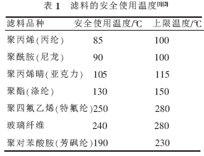 (2)在選擇濾料時, 應充分注意含塵氣體的性質。 當含塵氣體具有酸、堿腐蝕性或易燃易爆性時,必須選擇具有抗腐蝕性的濾料及抗燃爆性的濾料。另外選擇濾料時,必需考慮含塵氣體的溫度。各種纖維材質濾料的安全使用溫度以及所允許的間斷瞬時使用的上限溫度見表1。
