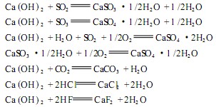 下(xia)列反(fan)(fan)應(ying)方(fang)程式是采(cai)用熟石(shi)灰為(wei)吸收劑時干法的基本反(fan)(fan)應(ying)過程。