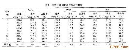 該處理設施自正式投入運行至1999年底,出水水質符合GB8978—96排放標準。1999年除6、7、8月停產檢修外,全年運行數據如表2所示。