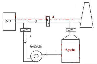 如發生第一種情況,鍋爐煙氣沒有100%通過脫硫系統,有一部分通過旁路煙道,旁路煙道的煙溫應與鍋爐的排煙溫度基本相同,這樣我們可調節增壓風機動葉或靜葉的開度,觀察增壓風機流量,盡量使其煙氣100%通過脫硫系統。