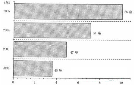 ![]() 圖1 中國生活垃圾焚燒發電廠發展趨勢(數據來源:建設部官方網站) |