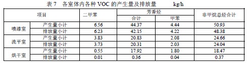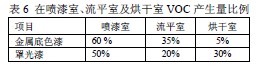 本例(li)在噴漆(qi)室(shi)(shi)、流平室(shi)(shi)及(ji)烘干室(shi)(shi)產(chan)生VOC 的比例(li)見表6。