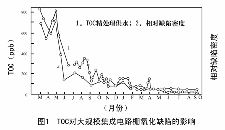 由于細(xi)菌(jun)及(ji)(ji)細(xi)菌(jun)內毒(du)素都會產生(sheng)顆(ke)粒(li)性污(wu)染(ran)及(ji)(ji)TOC的(de)污(wu)染(ran),由圖1、圖2明顯看出(chu)顆(ke)粒(li)性污(wu)染(ran)及(ji)(ji)TOC的(de)污(wu)染(ran)對(dui)大規模集成電(dian)路(lu)的(de)影響(xiang),因此(ci)在兆位電(dian)路(lu)用水中對(dui)TOC、細(xi)菌(jun)及(ji)(ji)細(xi)菌(jun)內毒(du)素的(de)含(han)量要嚴格控(kong)制(zhi)。