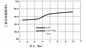 2.2 低(di)壓和超低(di)壓膜(mo),如(ru)CPA2,NTR-759膜(mo)和ESPA膜(mo),脫除水中(zhong)二氧(yang)化硅(gui)能(neng)力,均在98%以上,標準條件下二氧(yang)化硅(gui)的脫除率見圖4。