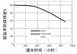2.3 化學穩定性(xing),以ESPA膜(mo),CPA2或NTR-759膜(mo)的耐氯性(xing)為例,如(ru)圖5所示。