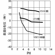 4.1 在不同的PH值下LF10,NTR759HR,ESPA膜表面(mian)電(dian)荷的比較,見(jian)圖6。