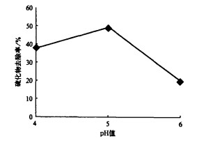 由圖2可知,pH值保持在5左右有利于硫的去除,酸的加入對去除硫化物有較大的影響,本實驗選用pH=5。