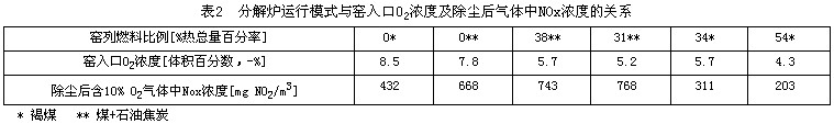 窯系統的測量結果表明,燃料在氣流中快速、均勻地混合是個有利因素。這證明了試驗中的發現:充分均勻混合對碳氫化合物還原NO至關重要。通過在大橫截面的分解爐內同一高度上多設燃料進口孔,能提高燃料的均勻混合程度。將燃燒器軸心對主氣流方向傾斜也能達到目的。要使在還原帶末端的燃盡空氣混合均勻,重要的是保證在還原帶的滯留時間足夠充分,原料中的HCN能轉化成NH3。產生的NH3能在燃盡帶還原NO。在試驗中無法系統地改變這些參數,因此沒法獲得有關在還原帶滯留時間和混合速率的信息。以后的研究仍需致力于優化分級燃燒分解爐的設計。