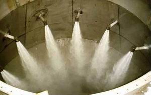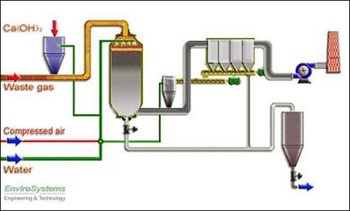 煙氣凈化過程中需要將液態的反應劑(如石灰乳用于脫硫,尿素用于脫硝)均勻快速地與煙氣混合,從而達到對煙氣中的有害成份的有效去除。另外,在半干法煙氣以及工業窯爐廢氣的處理中,為調整煙氣的溫度、濕度,需要向煙氣中噴入高度霧化的水,所有這些過程的核心技術是液體的霧化技術。經過霧化,液體形成高度分散的微小粒珠,使液氣接觸面積最大化,有效地提高了反應速度。
