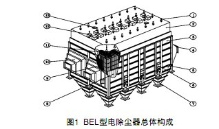 2.1BEL型電除塵器總體構成與電場極配形式BEL型電除塵器總體結構,如圖1所示。