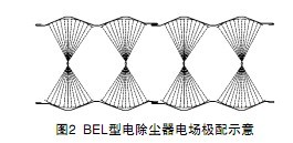 通過將與側部振打配合的波形極板和與頂部電磁振打相配合的陰極結構有機地結合,使這兩種結構的優點得到更進一步的發揮,形成BEL型電除塵器電極結構的最大特點。