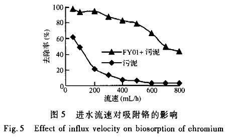 2.4 進水(shui)流速對吸附鉻的(de)影響