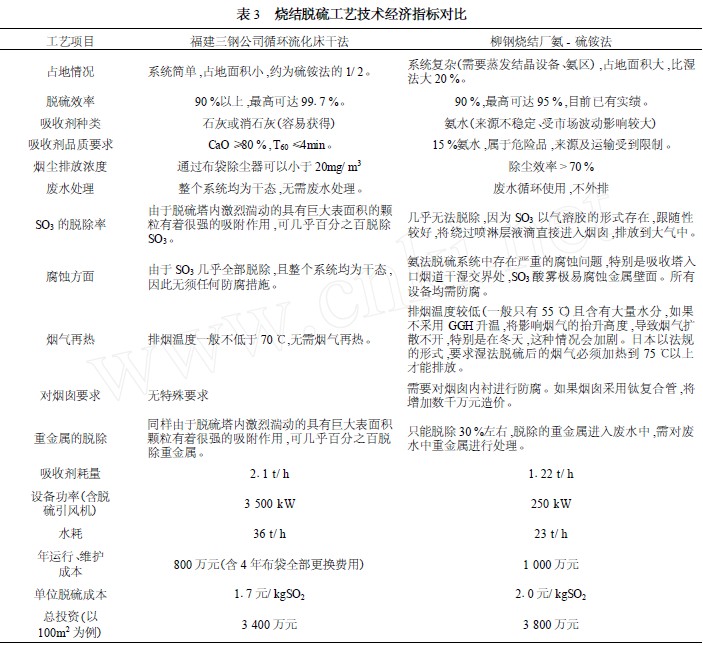 硫銨法與循環流化床法燒結煙氣脫硫技術的比較