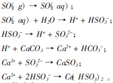 洗滌液石灰石漿與煙氣中的SO2 反應生成亞硫酸鈣和石膏。為了實現將反應產物完全轉化為石膏,需將氧化用的空氣通入到持液槽中,將亞硫酸鈣氧化為硫酸鈣,化學過程如下: