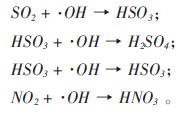 本實驗中涉及的濕式石灰石-石膏法中的強制氧化系統,即可省去過程( 2) 的試驗。此含有強氧化性物質的水通過電化學的方法制取:即利用電解的方法,在水中產生具有強氧化性的·OH 等自由基,用以氧化煙氣中的SO2 及NO,其化學過程如下: