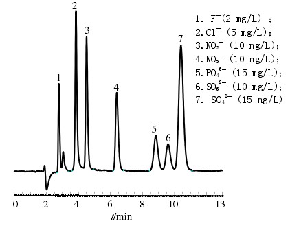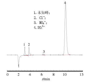 色譜條件:色譜柱IonPac AS14;保護柱IonPac AG14;抑制器ASRS?ULTRA;淋洗液:3.5mmol Na2CO3/1.0mmol NaHCO3;淋洗液流速1.2mL/min;進樣量25μL;電導檢測器靈敏度為0.01μs。定量分析采用峰面積工作曲線法。