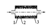 ![]() 圖5阻性消聲器 1.穿孔護面板 2.外殼 3.吸聲材料 |