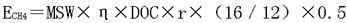 該方法依據垃圾成分和元素分析,并通過生化反應計算產氣量,計算公式如下: