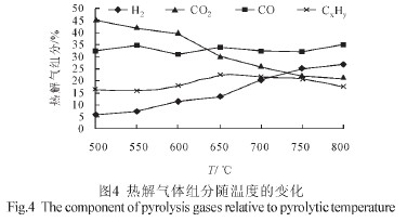 2.2 熱解終溫對產氣成分的影響
