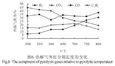 由圖6 可以看出不(bu)同熱(re)解溫(wen)度下強(qiang)化水(shui)煤(mei)氣反應(ying)對氣體(ti)組分的(de)影(ying)響,在圖中隨(sui)著熱(re)解溫(wen)度的(de)增加,特別是當熱(re)解溫(wen)度大(da)于650℃以后H2 和CO 的(de)所(suo)占百分比明(ming)顯增加。所(suo)以強(qiang)化水(shui)煤(mei)氣反應(ying)有利于熱(re)解氣產量的(de)增加。