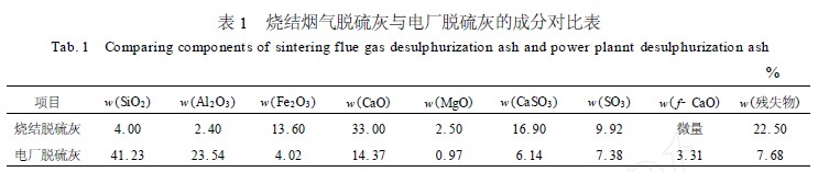 燒(shao)結(jie)煙(yan)氣脫(tuo)硫(liu)灰(hui)(hui)(hui)(hui)(hui)與電(dian)廠(chang)(chang)脫(tuo)硫(liu)灰(hui)(hui)(hui)(hui)(hui)的(de)(de)化學(xue)成分(fen)亦存在很大(da)差異,見表(biao)1 。由(you)表(biao)1 可以看出,燒(shao)結(jie)煙(yan)氣脫(tuo)硫(liu)灰(hui)(hui)(hui)(hui)(hui)中(zhong)(zhong)CaO ,CaSO3 和SO3 的(de)(de)質(zhi)(zhi)量分(fen)數(shu)較(jiao)高(gao)(gao)(gao),分(fen)別為(wei)33. 0 % ,16. 9 %和9. 92 % ,為(wei)高(gao)(gao)(gao)鈣(gai)、高(gao)(gao)(gao)硫(liu)型(xing)脫(tuo)硫(liu)灰(hui)(hui)(hui)(hui)(hui); Fe2O3 的(de)(de)質(zhi)(zhi)量分(fen)數(shu)高(gao)(gao)(gao)達(da)13. 6 % ,比電(dian)廠(chang)(chang)脫(tuo)硫(liu)灰(hui)(hui)(hui)(hui)(hui)高(gao)(gao)(gao)9. 58 % ,這是(shi)由(you)于在煉鋼過程中(zhong)(zhong)加入了鐵(tie)礦石(shi),使得Fe2O3 的(de)(de)質(zhi)(zhi)量分(fen)數(shu)高(gao)(gao)(gao),燒(shao)結(jie)煙(yan)氣脫(tuo)硫(liu)灰(hui)(hui)(hui)(hui)(hui)顏(yan)色呈深(shen)紅色; SiO2 ,Al2O3 和MgO 的(de)(de)質(zhi)(zhi)量分(fen)數(shu)相對較(jiao)小; f2CaO 為(wei)微量,這是(shi)由(you)于產(chan)生的(de)(de)脫(tuo)硫(liu)灰(hui)(hui)(hui)(hui)(hui)渣溫(wen)度高(gao)(gao)(gao)達(da) 70~80 ℃,只要經過一定的(de)(de)悶熱處理,加之(zhi)脫(tuo)硫(liu)灰(hui)(hui)(hui)(hui)(hui)的(de)(de)顆(ke)粒(li)較(jiao)細(xi), f2CaO 即(ji)可全部(bu)消解和消失;燒(shao)失量為(wei) 22. 5 % ,比電(dian)廠(chang)(chang)脫(tuo)硫(liu)灰(hui)(hui)(hui)(hui)(hui)高(gao)(gao)(gao)14. 82 %,說(shuo)明燒(shao)結(jie)煙(yan)氣脫(tuo)硫(liu)灰(hui)(hui)(hui)(hui)(hui)中(zhong)(zhong)含(han)有大(da)量未燃(ran)的(de)(de)碳。