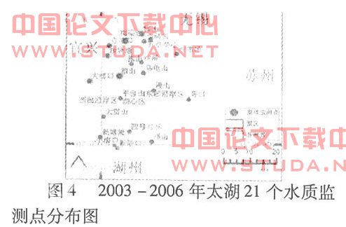本文數據主要來自2003~2006年太湖21個監測點的監測數據。
