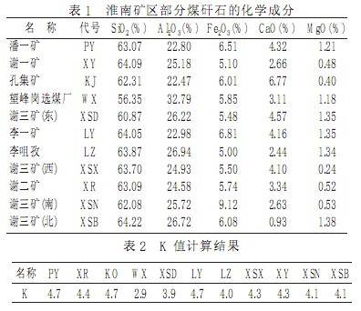 由表(biao) 1 可見淮南礦區煤(mei)矸石(shi)屬中鋁矸石(shi), 其 K 值(K=SiO2 克(ke)分子數/Al203 克(ke)分子效(xiao))列于(yu)表(biao) 2。