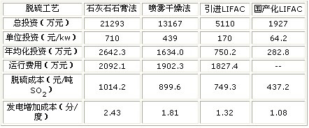 2、復合固硫劑脫硫及LIFAC法脫硫經濟效益分析