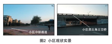 該小(xiao)區位于西(xi)(xi)(xi)環北路(lu)(lu)東側(ce),西(xi)(xi)(xi)北側(ce)路(lu)(lu)口為一3m高(gao)的橋(qiao)梁(liang)(liang),西(xi)(xi)(xi)南側(ce)為路(lu)(lu)口。西(xi)(xi)(xi)環北路(lu)(lu)道路(lu)(lu)中心線距離(li)小(xiao)區的敏感建筑約(yue)(yue)48.5m,距離(li)小(xiao)區圍墻(qiang)約(yue)(yue)42.5m。西(xi)(xi)(xi)環北路(lu)(lu)在小(xiao)區中央位置處往北開始逐(zhu)漸(jian)升高(gao)至橋(qiao)梁(liang)(liang)高(gao)度(約(yue)(yue)3.5m高(gao))。小(xiao)區現狀平面布置圖和實景圖參見圖1、圖2。