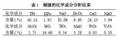 鋼渣的化學成分分析是委托武鋼技術中心檢測試驗研究所進行的,檢測結果見表1。