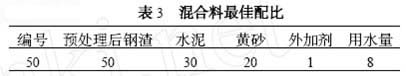 經過大量試驗,確定的最佳配比見表3。