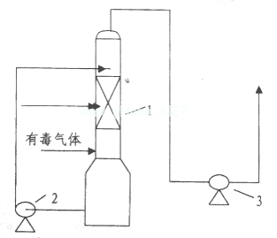 1-吸收塔;2-吸收劑循環泵;3-風機 |