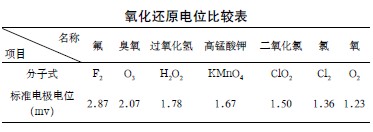 臭氧的氧化能力極強,從下表可知,臭氧的氧化還原電位僅次于氟,比過氧化氫、高錳酸鉀等都高。此外,臭氧的反應產物是氧氣,所以它是一種高效清潔的強氧化劑。