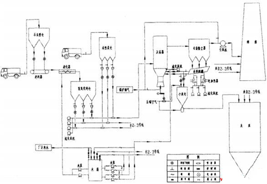 布袋除塵器收集的灰從其底部和循環灰槽大部分返回反應器循環流動:多余的細灰進入小灰倉,再由小灰倉送到灰庫。該細灰主要成分為CaSO4、CaCO3,經鑒定無害后可以作采石場或煤礦填充材料,也可作墻壁和街道的隔音材料。該工藝設備簡單且無廢水排出。