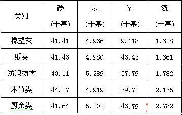 2010年成都市環境衛生監測中心對成都市區生活垃圾進行了元素分析,結果見下表3