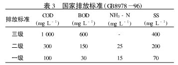 廢水處理站的廢水排放執行GB8978-96的排放標準,如表2、表3。