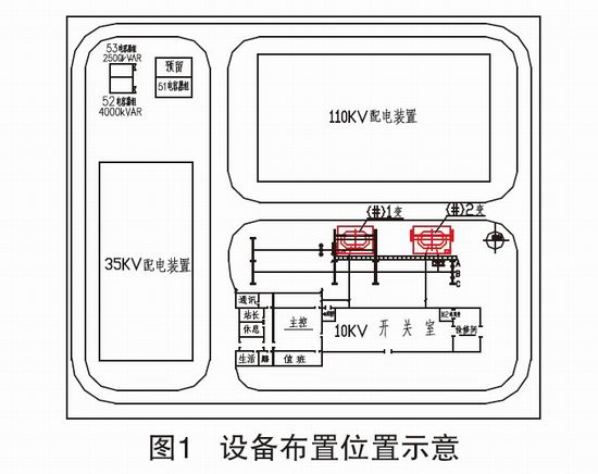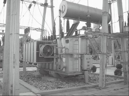 1#主變壓器:長7.165米,寬4.3米、高度(帶油枕)4 . 8 3米,型號:S F S Z 9 - 3 1 5 0 0 / 1 1 0,容量為31,500kVA,帶有4臺DBF-7Q冷卻風機。