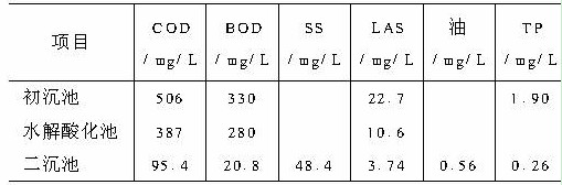 到徹底處理,小試結果表明在最優的試驗條件下,選用PAC作混凝劑,混凝處理可以去除60%的COD、85%的LAS、90%的TP,水解酸化可再去除10%的COD和7%的LAS,這樣,混凝和水解酸化共可去除約70%的COD和92%的LAS,對抑制泡沫有重要的作用,同時使廢水的BOD/COD由原廢水的0 .30提高到0 .80,廢水的生物降解性能得到了明顯的提高。根據小試的結果和有關參考文獻,提出了混凝 水解酸化 生物接觸氧化工藝,設計水量為1500m3/d,COD為1200mg/L。